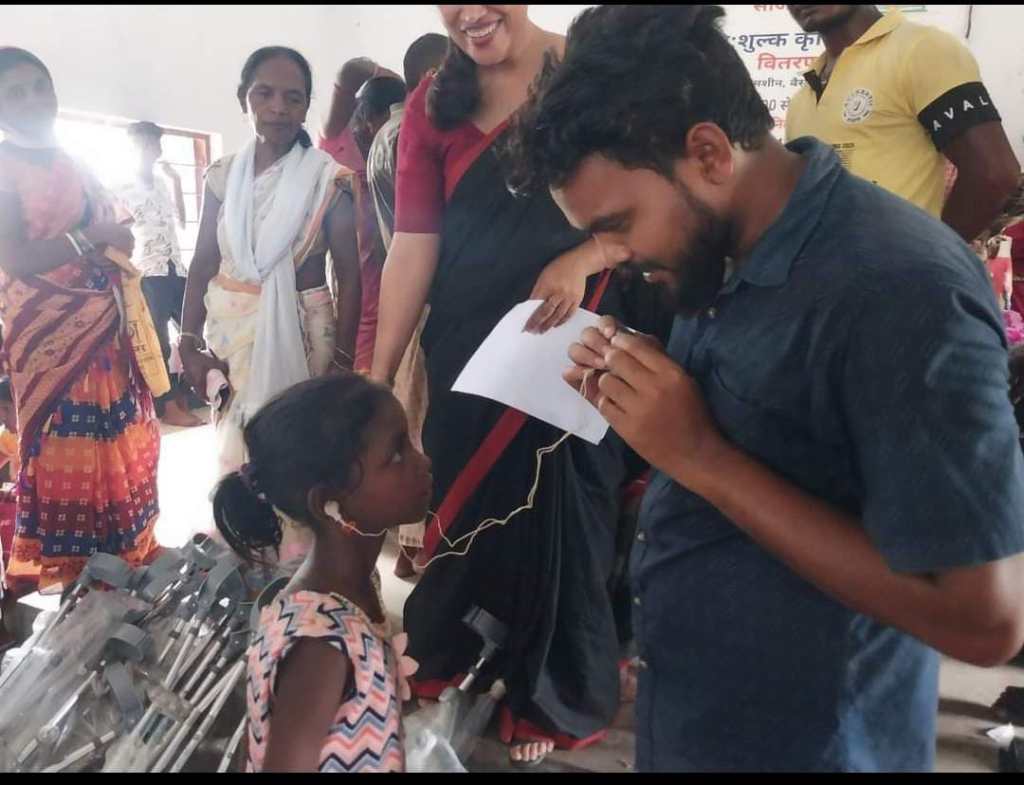 At a general health check-up camp organized by Sanskriti Social Welfare Foundation (SSWF) in a remote village, a small girl with hearing difficulties received a hearing aid—a life-changing moment wrapped in quiet joy.