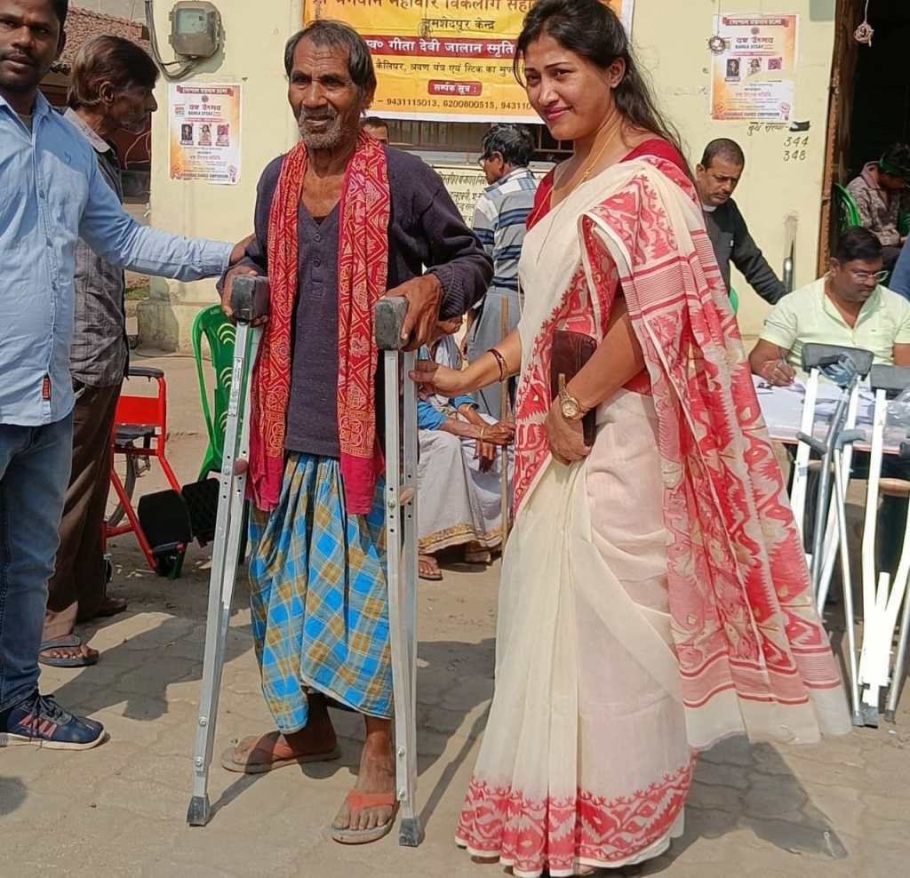 In a heartfelt event organized by Sanskriti Social Welfare Foundation (SSWF) for over 300 identified differently-abled beneficiaries, an emotional moment stood out—an elderly man receiving a pair of crutches, his eyes welling with gratitude and hope.